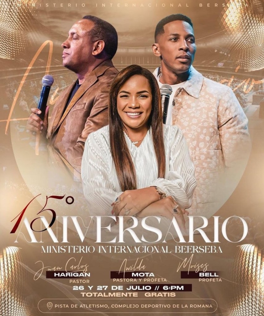 La Romana, R.D. – La pastora y profeta de naciones Awilda Mota anuncia con júbilo la celebración del 15.º aniversario del Ministerio Internacional Beerseba, un evento especial que reunirá a la comunidad cristiana en dos noches llenas de adoración, palabra y presencia de Dios.