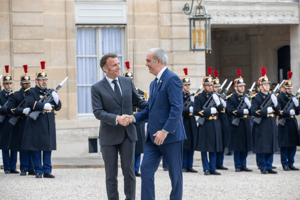 Tras ser recibido con los honores correspondientes, el presidente Luis Abinader se dirigió, junto con Emmanuel Macron, al interior del Palacio, donde además volvieron a tratar el tema de la pacificación y democratización de Haití. Asimismo, tocaron el tema de la guerra de Irán y mostraron su preocupación por la situación en esa región.