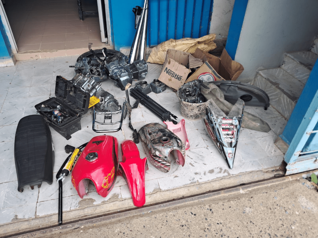 En el mismo operativo, efectuado en una residencia del sector Matanza, en la zona sur de la ciudad, las autoridades ocuparon varias motocicletas de distintas marcas, así como piezas, motores y herramientas, presuntamente vinculadas a actividades ilícitas.